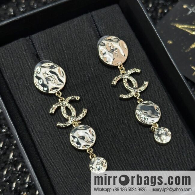 ☀️New ☑️ Chanel C4 double c round smooth stud earrings