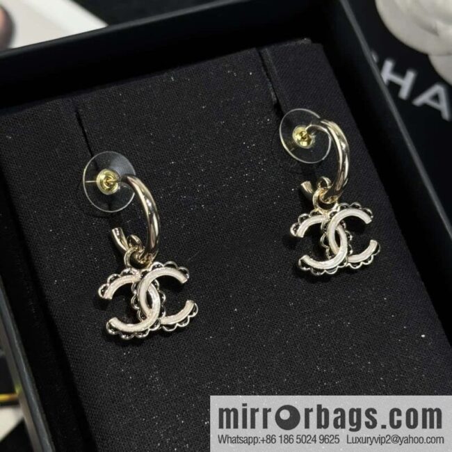❗️New ❗️☀️ new ☑️ chanel c2 double c lace edge stud earrings ☀️