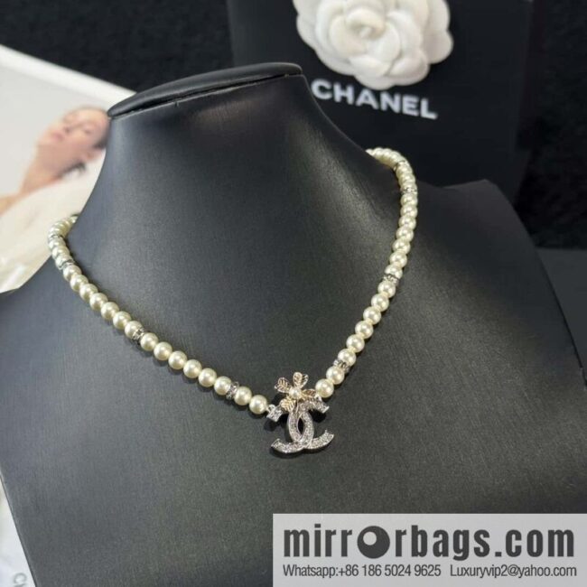 ☀️New ☑️ Chanel Double C Clover Pearl Necklace
