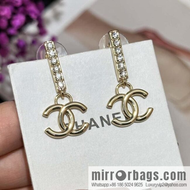 ❗️New ❗️☀️ new ☑️ Chanel double c vertical rhinestone stud earrings ☀️