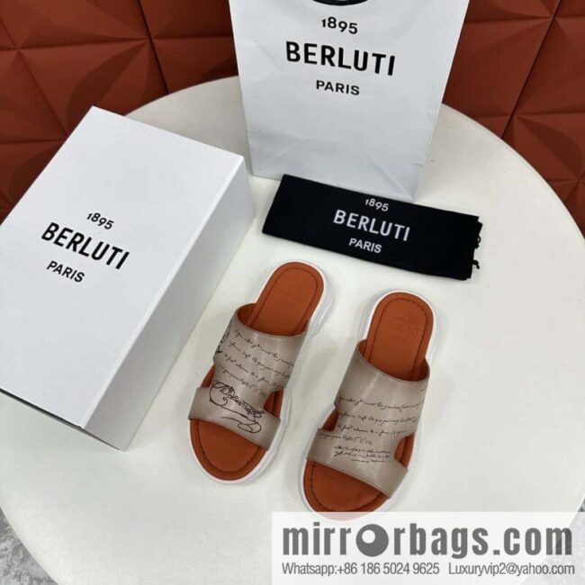 ๐๐Berlut * Bruti 2024 summer new series, inspiration new season, new Shadow leather slippers, official price RMB ยฅ9,700 new design slippers, simple and atmospheric, made of imported leather embryo hand-changed color and rubbing, classic venaczia leather is engraved with asymmetric scritto pattern tattoos, highlighting the details and spiritual inheritance of Berlut * everywhere. Patina ancient dyeing process adds elegance to leather. Ergonomic inner sole with soft elastic and comfortable rubber outsole, soft and comfortable at the same time with the functionality and support of sports shoes, all details are only for comfort, comfortable and leisurely. Quiet and elegant, versatile summer style! Summer without slippers is imperfect, easy to wear and easy to match, a must-have item for changing seasons!