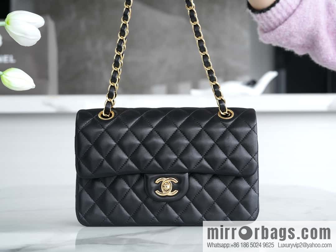 “Classic Flap” Classic Mouth Cover Bag, Black Sheep Gold, Small🔆