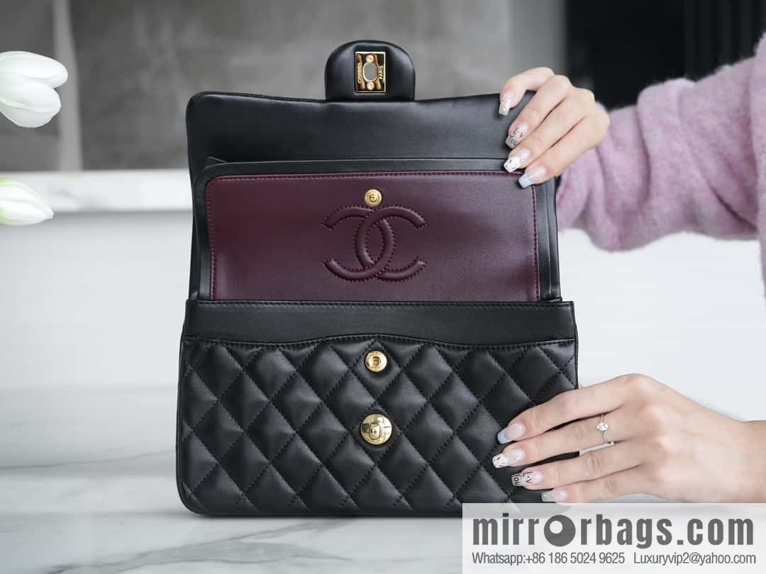 CHANEL \”Classic Flap\” Classic Mouth Cover Bag, Black Sheep Gold, Small A01113