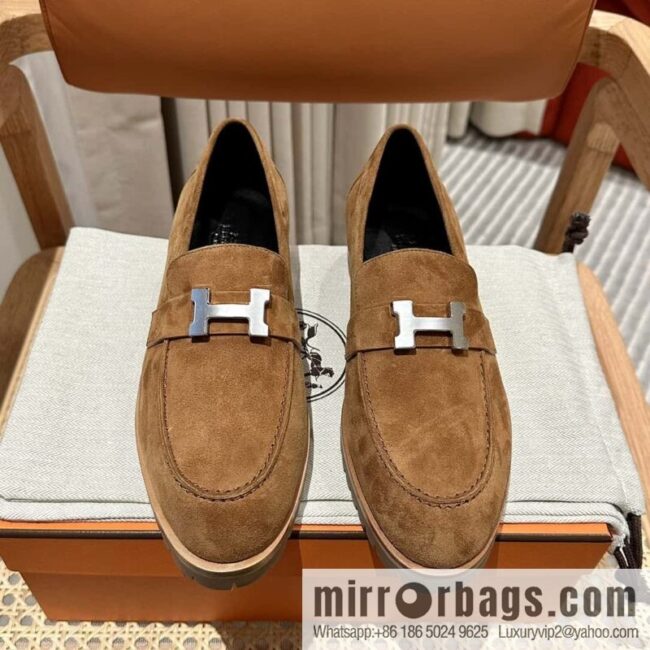 Calfskin loafers with grooved soles and palladium-plated signature “H” details for a sleek casual look