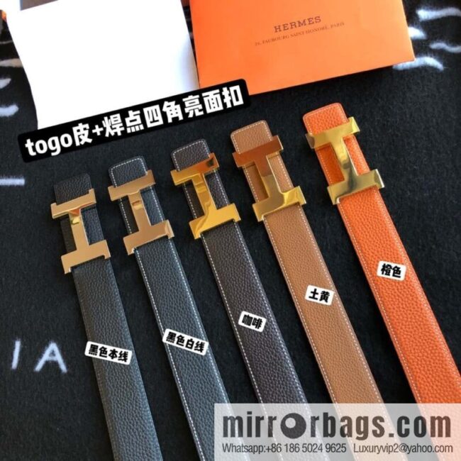 Hermes H four-corner solder joint bright palladium buckle, imported cowhide belt 38mm