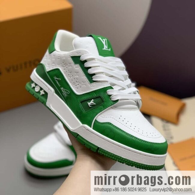 LV color matching calfskin Vuitton logo, couple sports running shoes