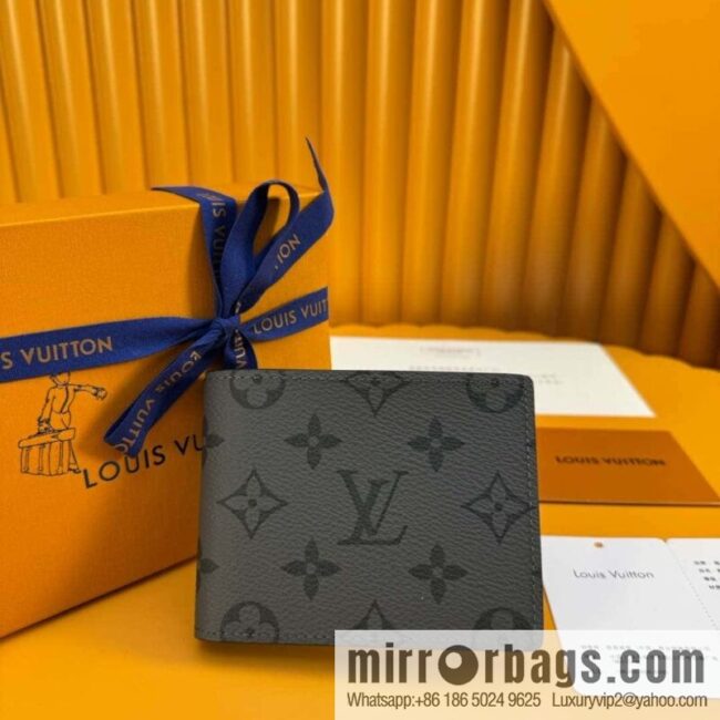 M80906 [Official Chip Edition] This Slender wallet is made of Monogram Eclipse Reverse canvas and grain leather lining, making it easy to fit in a pocket or handbag. The card position and banknote compartment reflect the concept of pragmatism. 11X8.5X2cm.