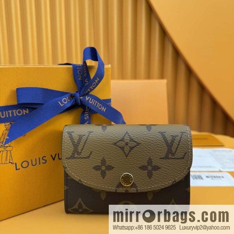 M82333 [Official Full Chip Version] This Rosalie change bag is made of Monogram and Monogram Reverse canvas, and has a rounded flap with an inscription snap button. It has an inner sticker bag, a zipper change bag, a card mezzanine and a rear sticker bag. 11x8x2.5cm.