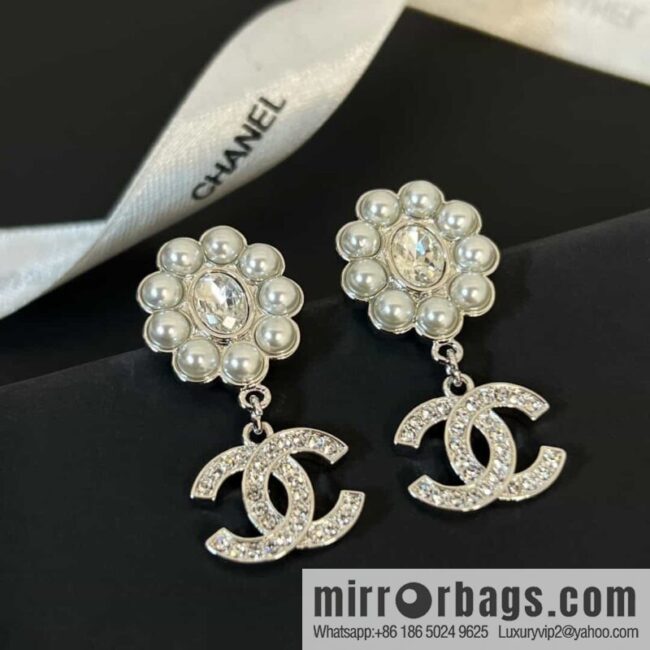 ☀️New ☑️ chanel c2 double c pearl stud earrings