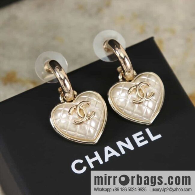 New model☑️CHANELChanel c2 double c rhombus peach heart love stud earrings