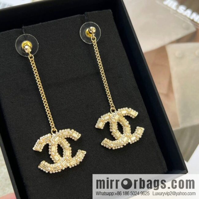 New Chanel stud earrings New modelCHANELChanel c2 double c long full diamond stud earrings [Gift Box] Full set of CHANEL original packaging [Craft] The original order level is handmade, and the engraving is complete. [Material] High-quality brass material
