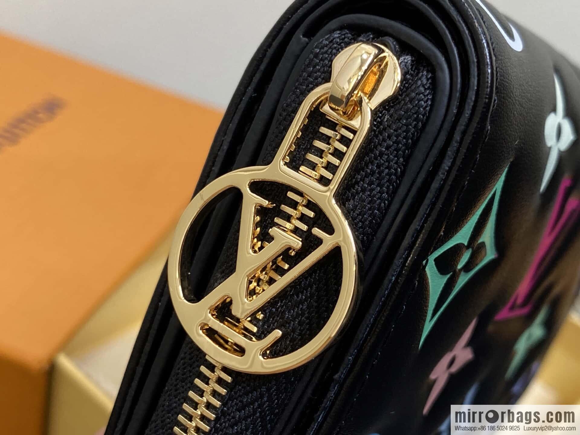 [Boutique‑grade] M13829 black silk screen print, full leather single zipper short wallet Zippy zipper wallet, this LV Ski series pull bag has a pillow-like soft feeling, this bag is taken from the brand’s Coussin series handbags, and it is created with a bright grid. The bag is made of classic Monogram flower lambskin, and there are gold gold pieces, including a thick LV Circle. 11 x 8.5 x 3 cm