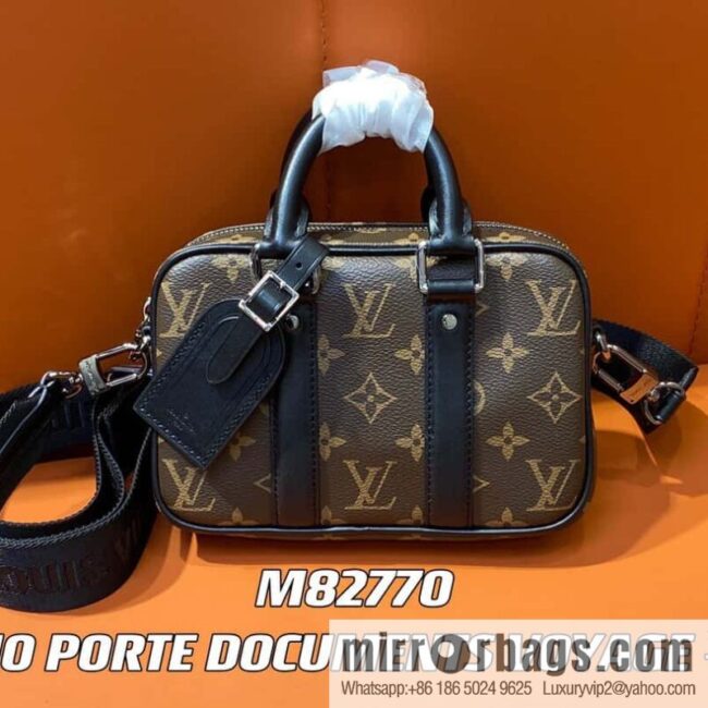 [Premium‑quality] M82770 monogram mini men’s bag briefcase series NANO PORTE DOCUMENTS VOYAGE handbag, this Nano Porte Documents Voyage handbag pays tribute to the classic prototype design, inherits the zipper opening and closing, handle and removable and adjustable shoulder strap and other elements, and easily controls business occasions with a personalized trend attitude. The spacious main compartment can store mobile phones and wallets, suitable for both shoulder and crossbody. Dimensions: 20 x 13 x 5.5 cm