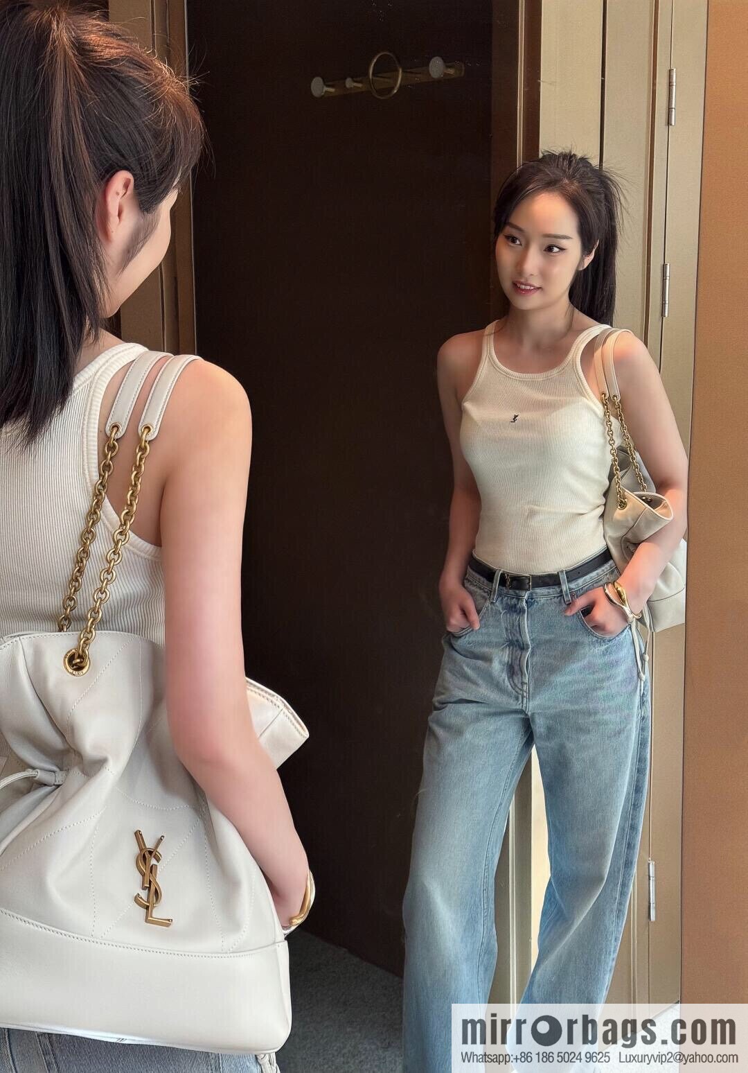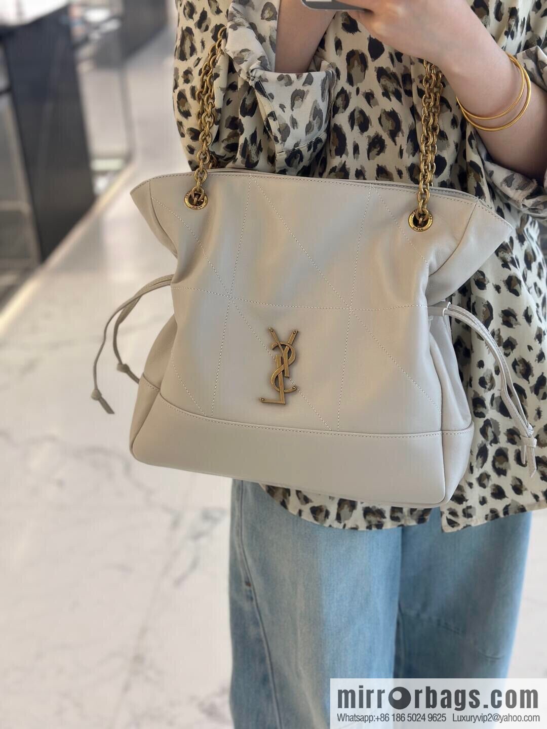 𝗝𝗮𝗺𝗶𝗲 𝟰.𝟯 small 𝗣𝗢𝗖𝗛𝗢𝗡_ lucky bag bucket bag 🆕 White The bag that grows on the tip of the heart~ Y is really good at making things happen! Soft lambskin, drawstring design can tighten or unfold both sides to create different silhouettes~ showing a natural and advanced wrinkle feeling! The metal chain and the metal logo on the bag complement each other, and the upper body has a natural sense of relaxation! Large capacity, can put down the laptop💻 Model Number: 833948 Size: 27 × 29 × 11cm